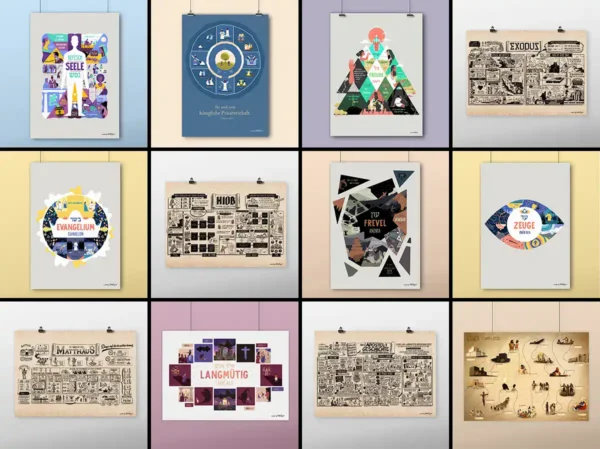 Hol dir ein Stück BibleProject an die Wand! Mit den Buchpostern hast du die Übersicht über ein komplettes Buch der Bibel. Die Poster zu den Wortstudien und der Serie “Wesen Gottes” zeigen dir die Bedeutung wichtiger Worte in der Bibel.